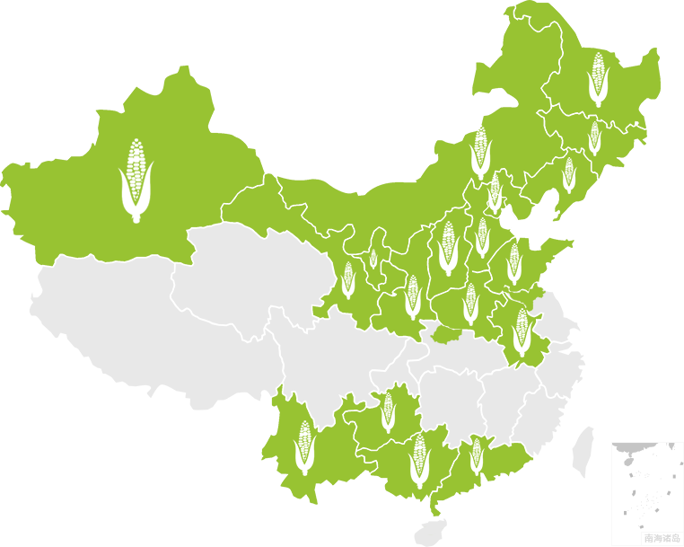 中種國際的玉米業務已經建立了集科研育種、生產加工、銷售服務于一體的經營模式。經營區域遍及東華北、黃淮海、西南和西北的主要玉米產區。中種國際以“公司+基地+農戶”的制種方式,在國內玉米制種自然條件最具優勢的西北河西走廊地區建有穩定的生產基地,同時,在玉米主銷區域已建立了完善的營銷及技術服務網絡,通過提供穩定可靠的高質量種子和優質高效的營銷模式服務于廣大農戶。截止目前,中種國際業務已經覆蓋: